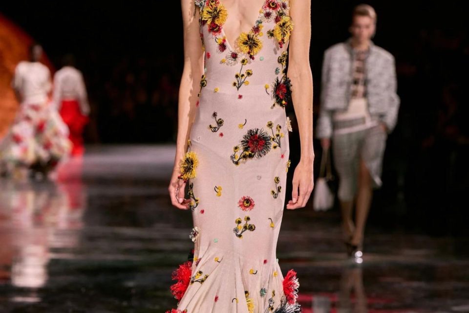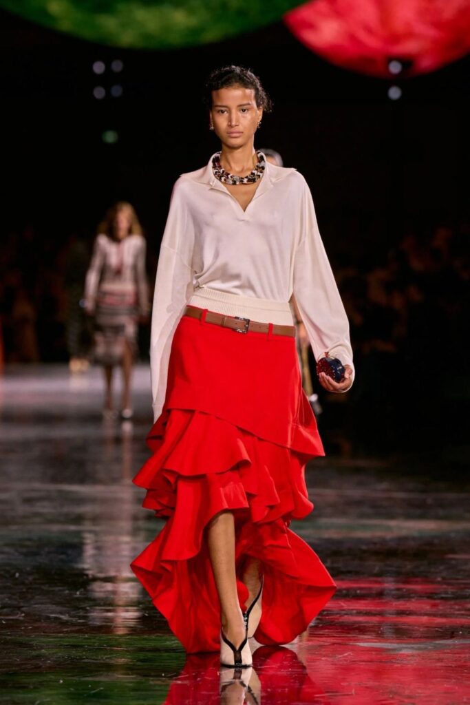 Exit les structures rigides de l’ère Lagerfeld. Matthieu Blazy opte pour des coupes organiques, des drapés souples, des asymétries délicates. Le tweed cède sa place au coton, à la soie, au satin. Les textures se mêlent, se contredisent, s’harmonisent. La silhouette devient langage, le vêtement devient sensation. Une féminité moderne, libre, qui ne cherche pas à séduire mais à s’exprimer.