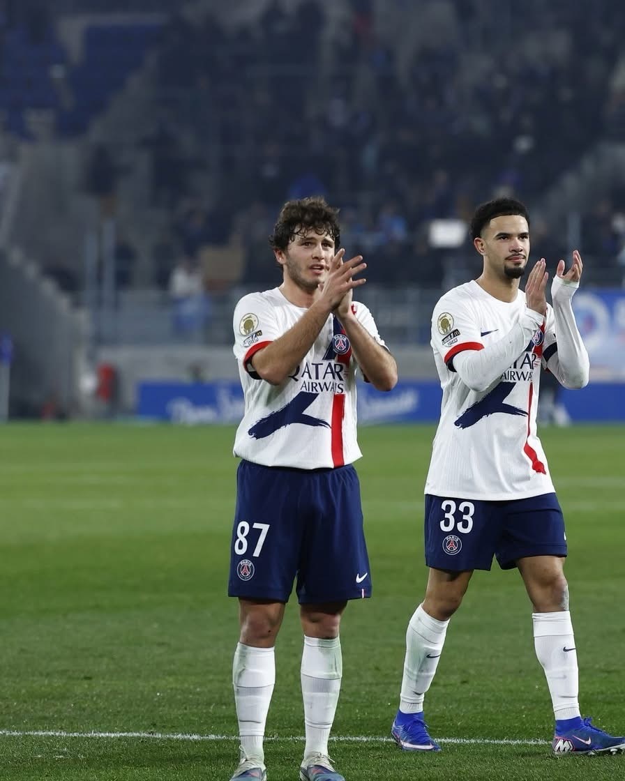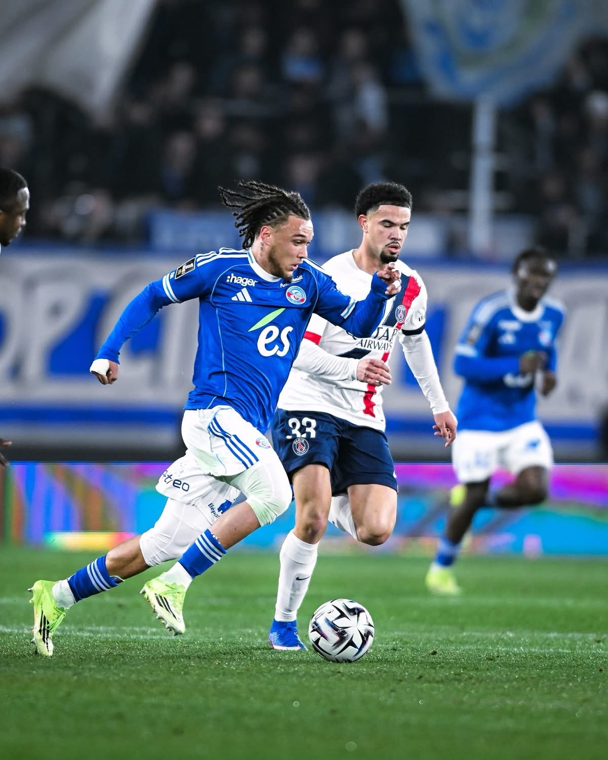 Sur une relance complètement manquée de Abakar Sarr, Bradley Barcola surgissait, contrait le ballon et lançait une action confuse dont Senny Mayulu profitait pour ajuster Mike Penders d’un tir croisé du gauche (0–1, 22ᵉ). La réaction strasbourgeoise ne tardait pas. Cinq minutes plus tard, un mouvement collectif splendide conclu par Guéla Doué, servi par Ben Chilwell, remettait les compteurs à zéro (1–1, 27ᵉ), sous les yeux de son frère Désiré Doué, entré plus tard côté parisien. Une première période intense, ouverte, qui laissait présager une suite électrique.