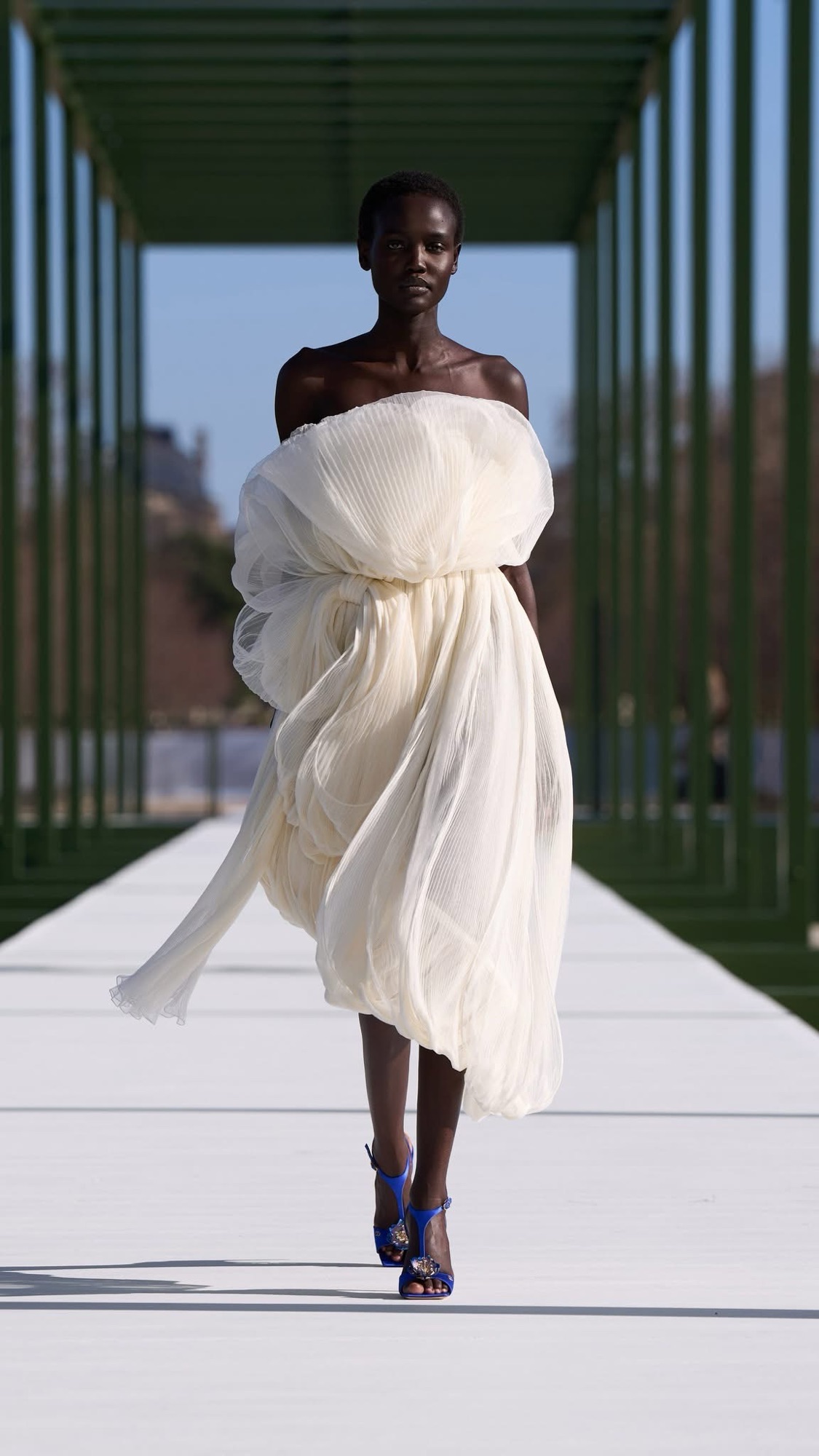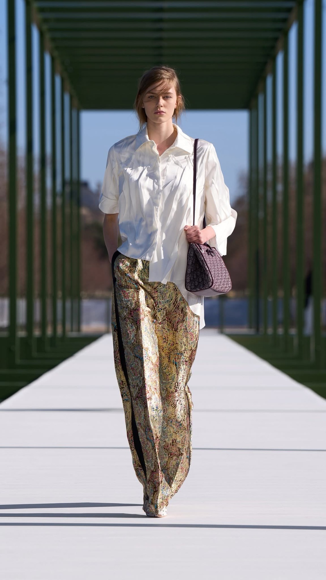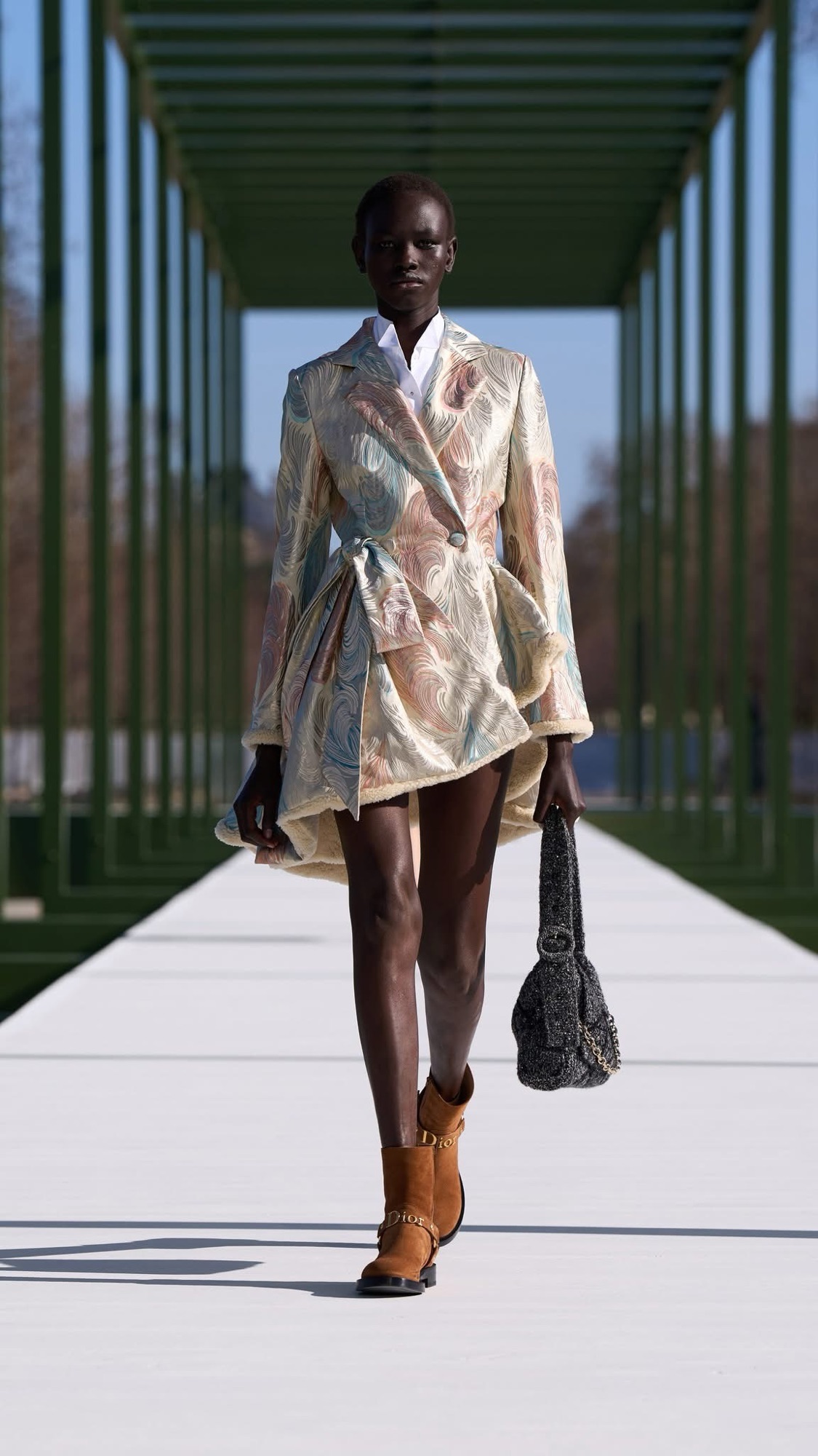 Dans ce décor impressionniste, Anderson a offert une vision douce, presque hypnotique, de la femme Dior. Une femme qui flotte, qui glisse, qui se transforme. Une femme qui marche comme on rêve.