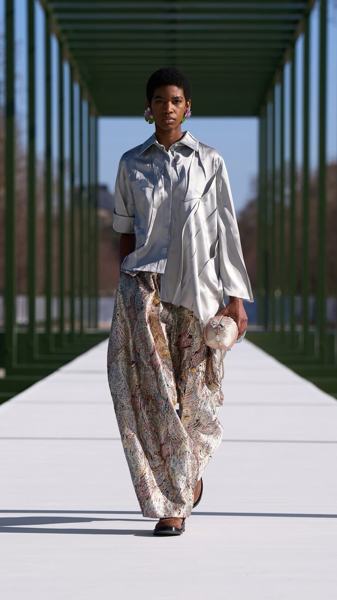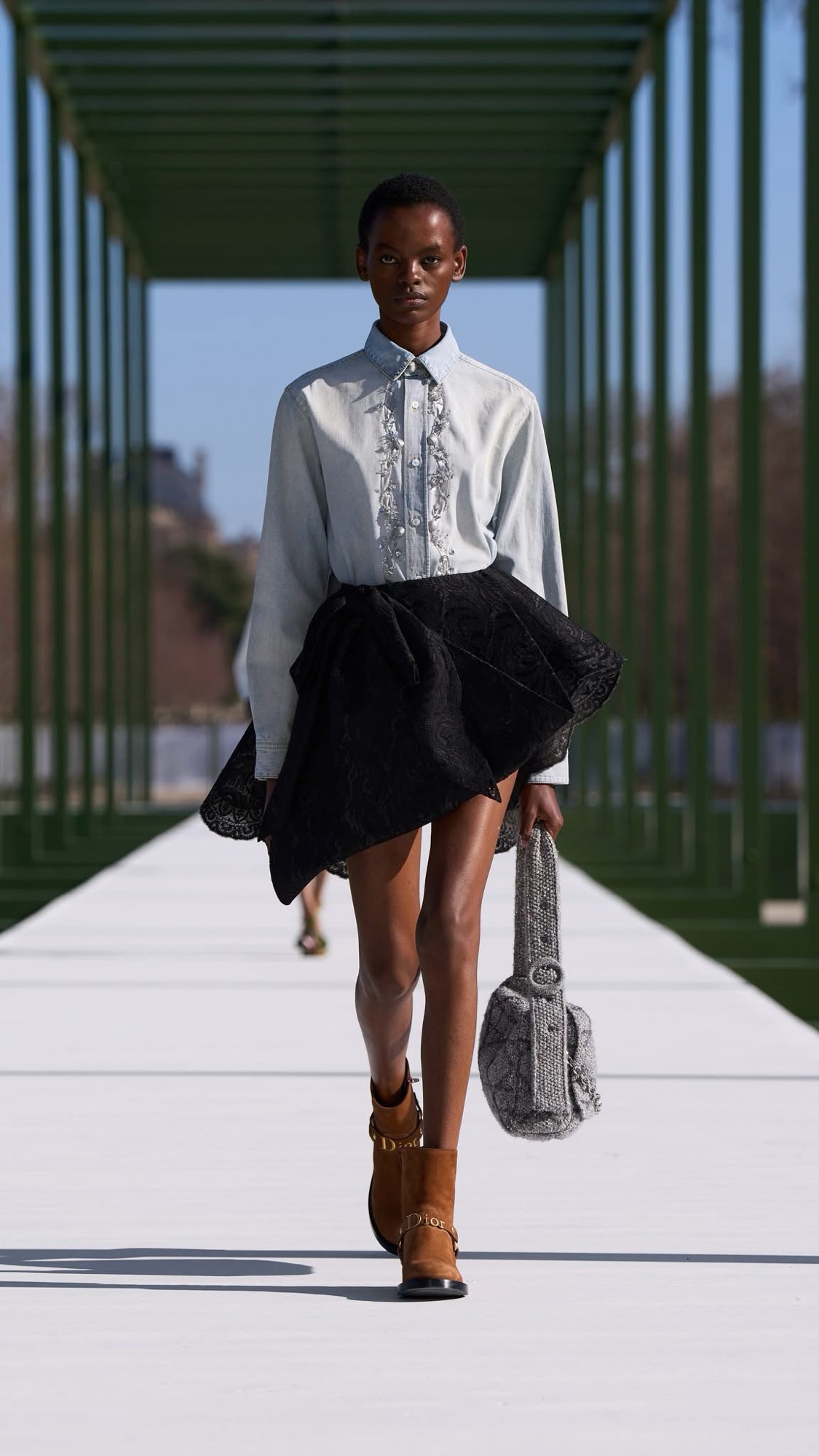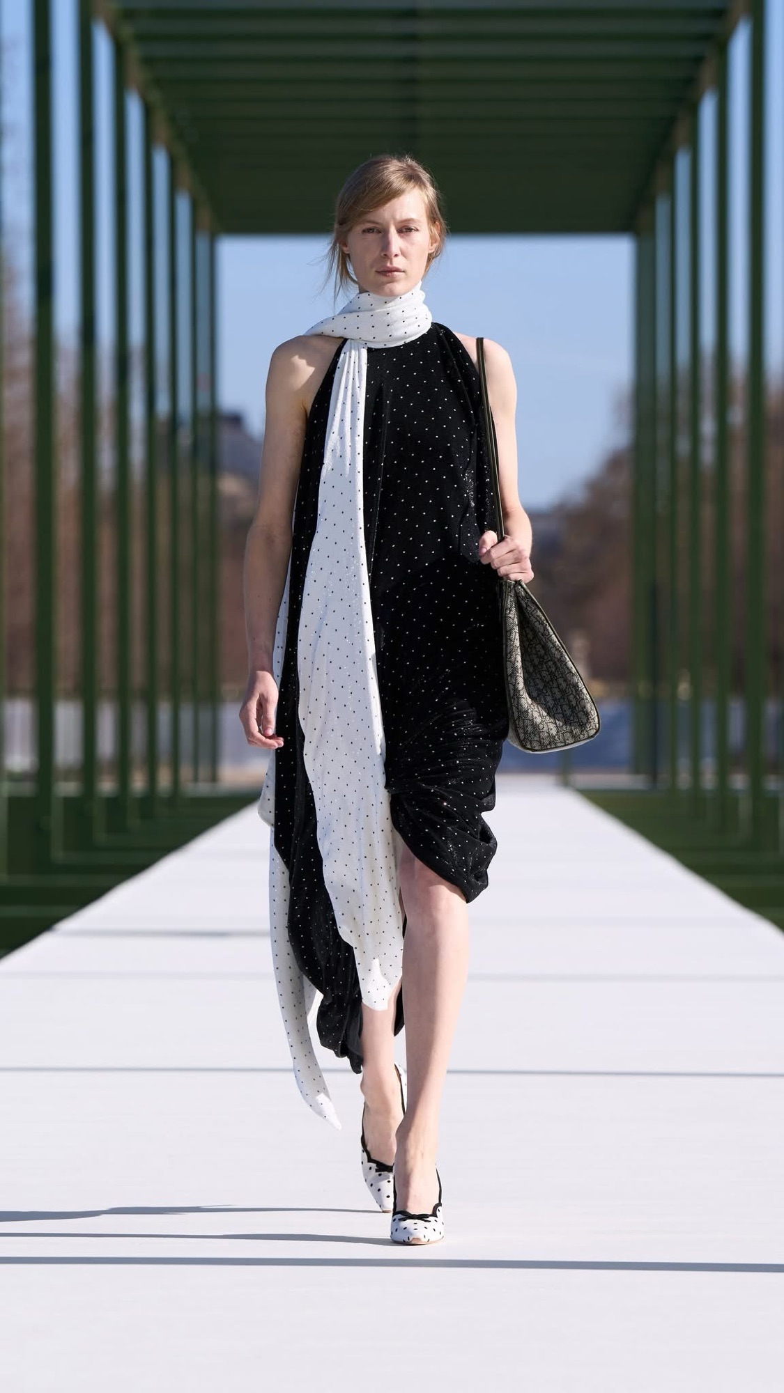 Dans ce décor impressionniste, Anderson a offert une vision douce, presque hypnotique, de la femme Dior. Une femme qui flotte, qui glisse, qui se transforme. Une femme qui marche comme on rêve.
