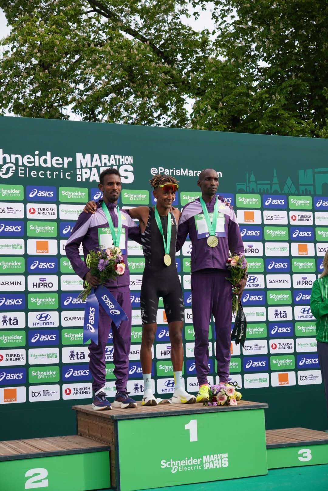 Chez les hommes, la course a longtemps été indécise. Yemaneberhan Crippa, Sila Kiptoo, Bayelign Teshager et Mohamed Ismail formaient un groupe compact jusqu’au 40e kilomètre. On sentait la tension, la retenue, l’attente du moment où l’un d’eux oserait. Ce moment est arrivé près du Trocadéro. Yemaneberhan Crippa a placé une accélération sèche, imparable. Bayelign Teshager a tenté de s’accrocher, avant de céder. Sila Kiptoo a résisté comme il a pu. Mohamed Ismail a lâché prise dans les derniers kilomètres. Yemaneberhan Crippa s’impose en 2h05’18, record personnel et victoire nette. Bayelign Teshager prend la deuxième place, Sila Kiptoo la troisième. Emmanuel Roudolff-Levisse signe une très belle performance française en passant sous les 2h06.