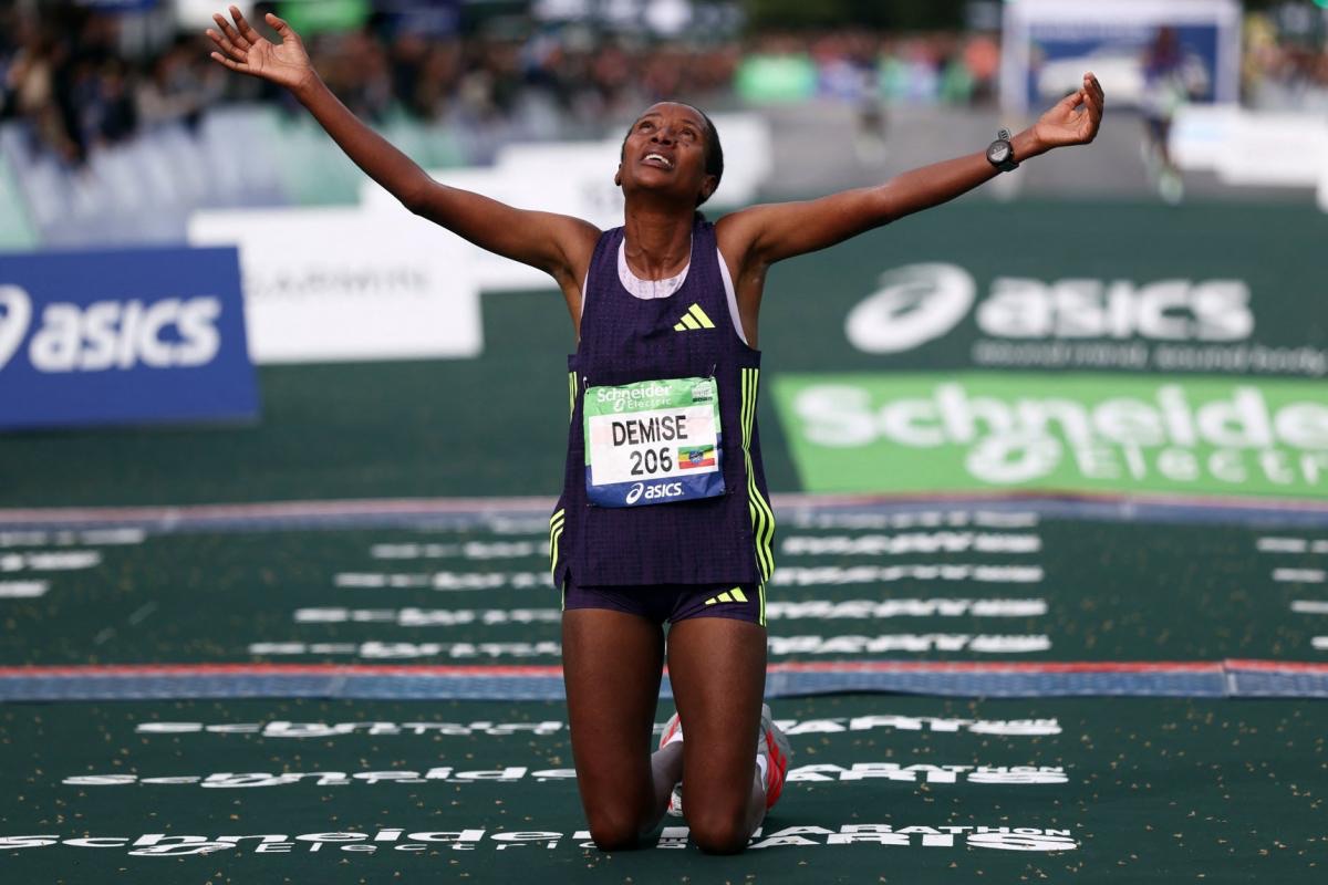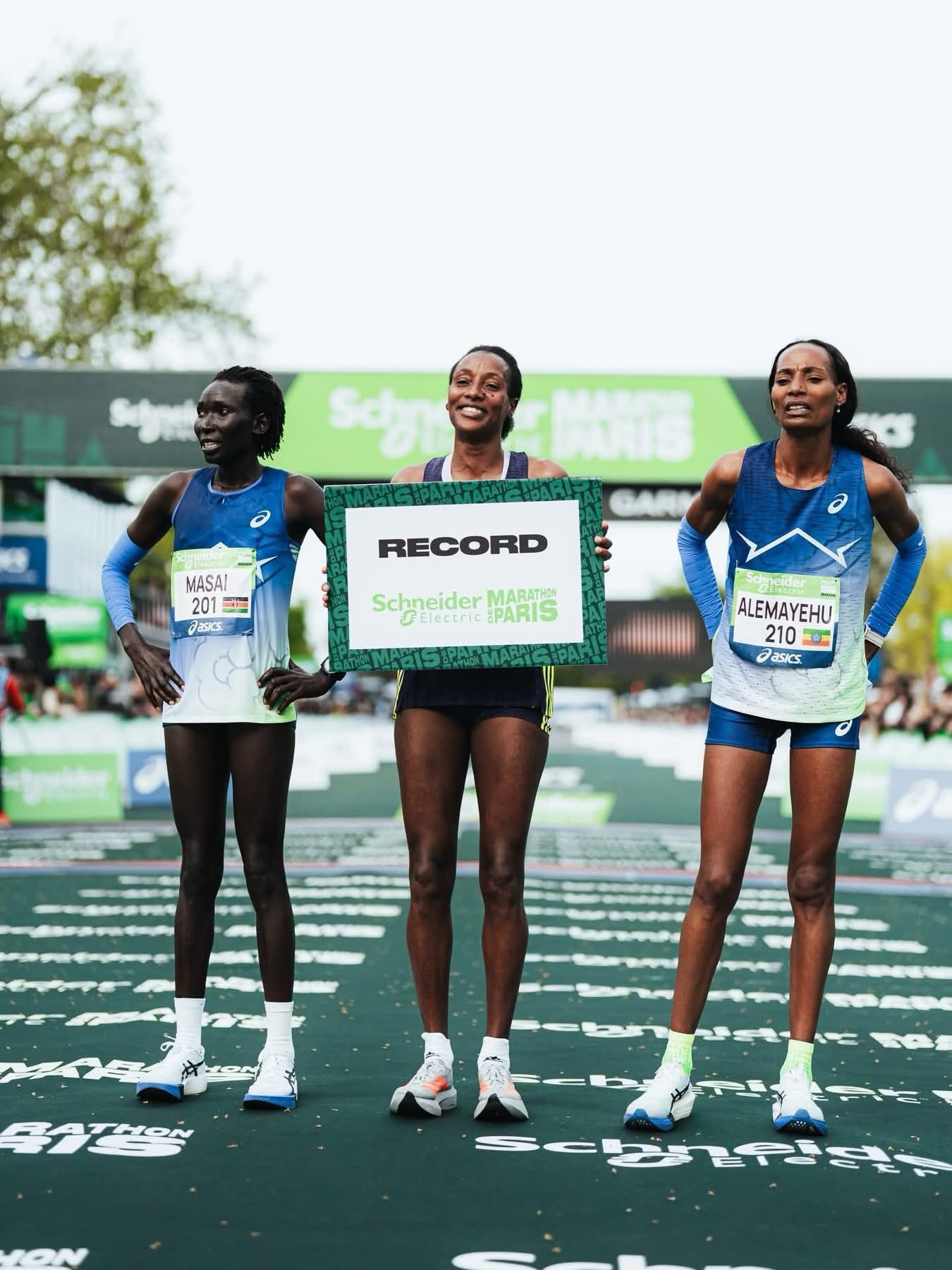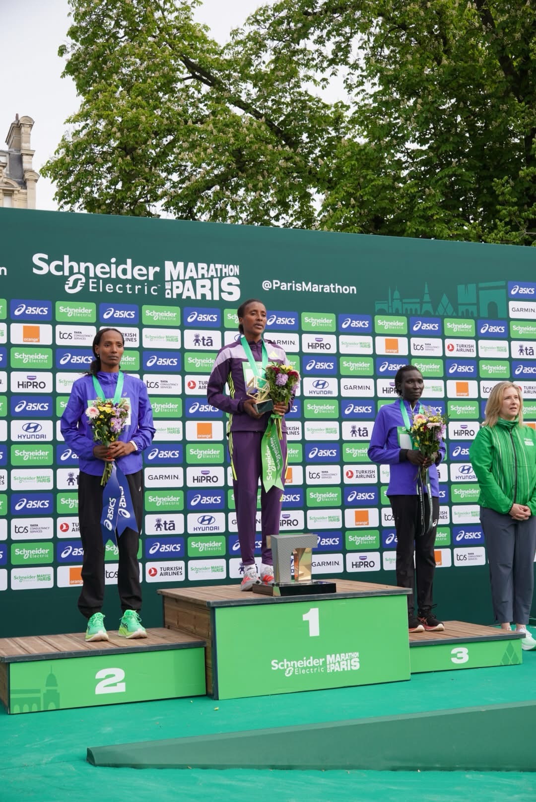 Chez les femmes, Shure Demise n’a laissé aucune place au doute. Dès les premiers kilomètres, elle a imposé son tempo, régulier, implacable. Elle coupe la ligne en 2h18’33, record de l’épreuve à la clé. Derrière elle, Misgane Alemayehu et Magdalyne Masai complètent un podium éthiopien de très haut niveau.